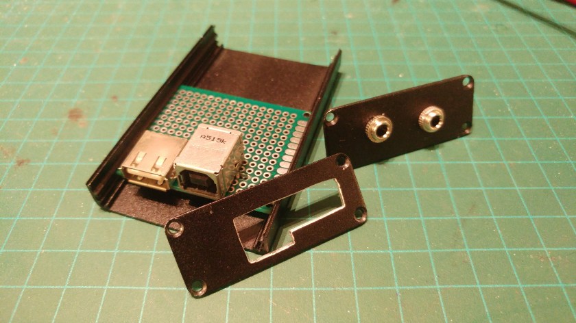 I added a switch and an indication LED, stereo 3.5mm jacks for the audio inputs and outputs and tested the circuit.
