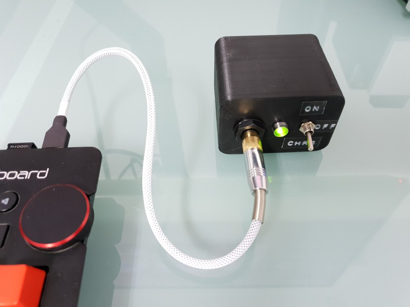 To save some space, I used the mic input as the charging port. There would be no point in charging and using the device simultaneously, as I will be charging it from a USB port on my computer, which will introduce the noise I wanted to avoid.