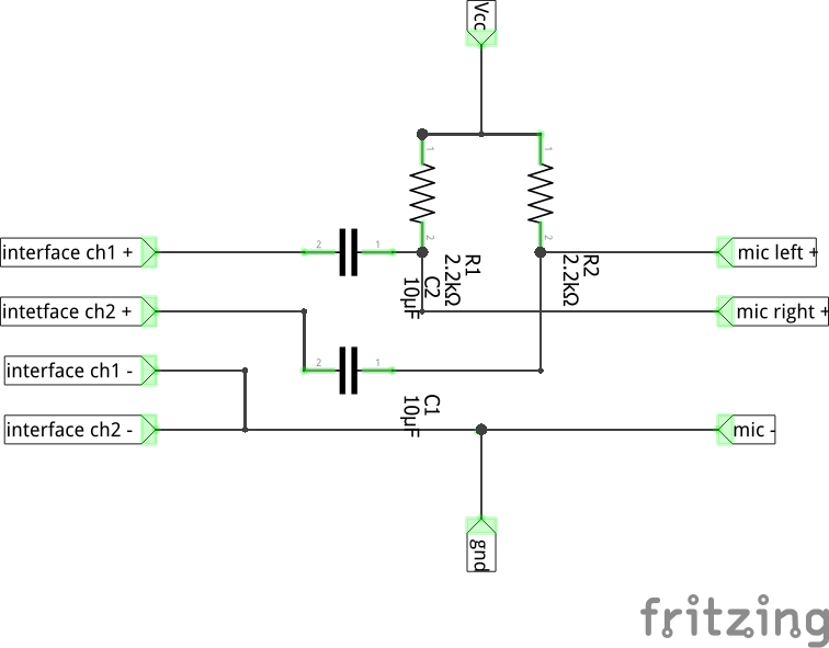 The principal is pretty simple. The microphone needs 1.5V – 5V on the signal contact to operate. The exact voltage is not specified, but i’ve tried between 2.5V and 5V and it works fine throughout the range.