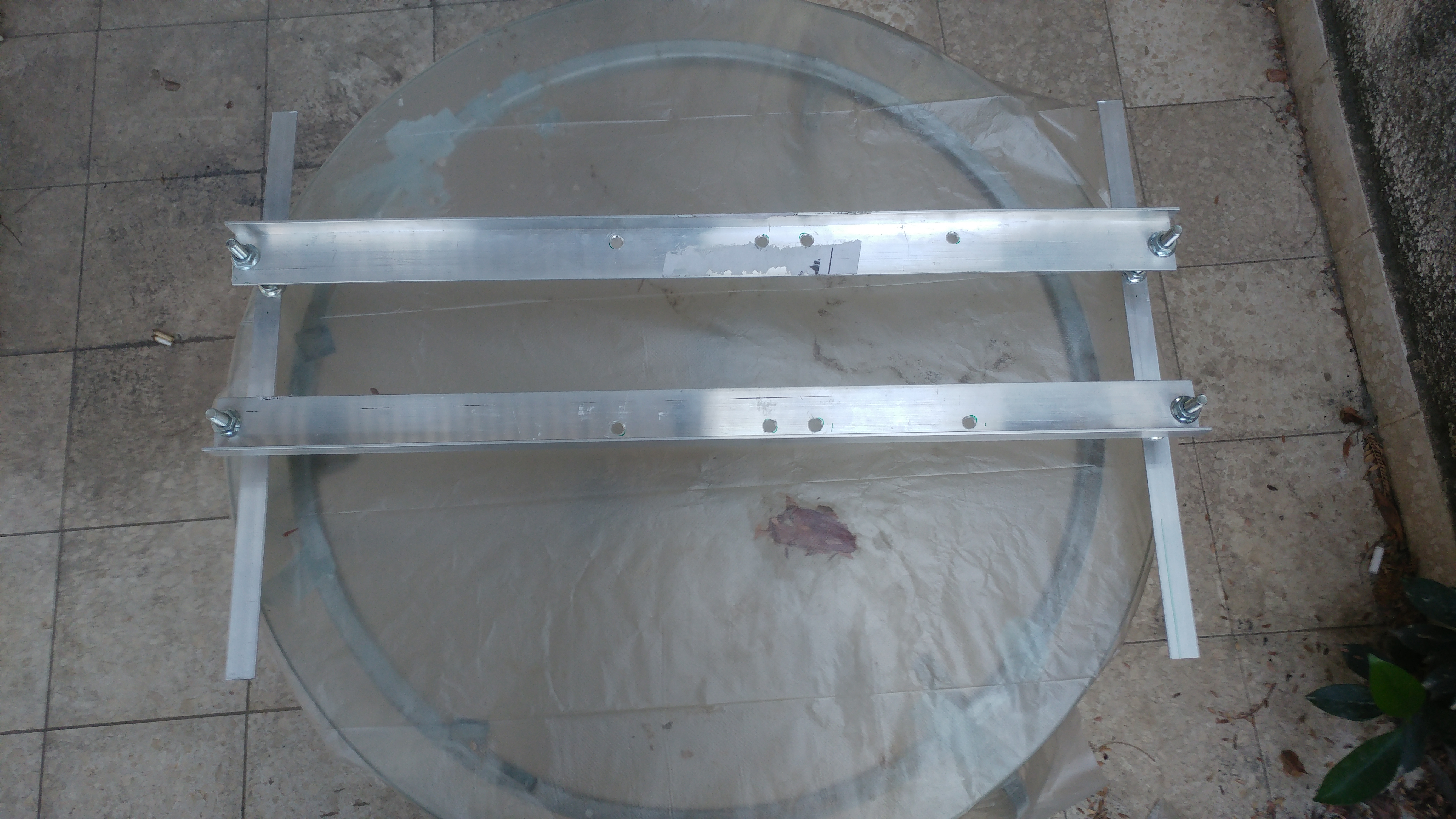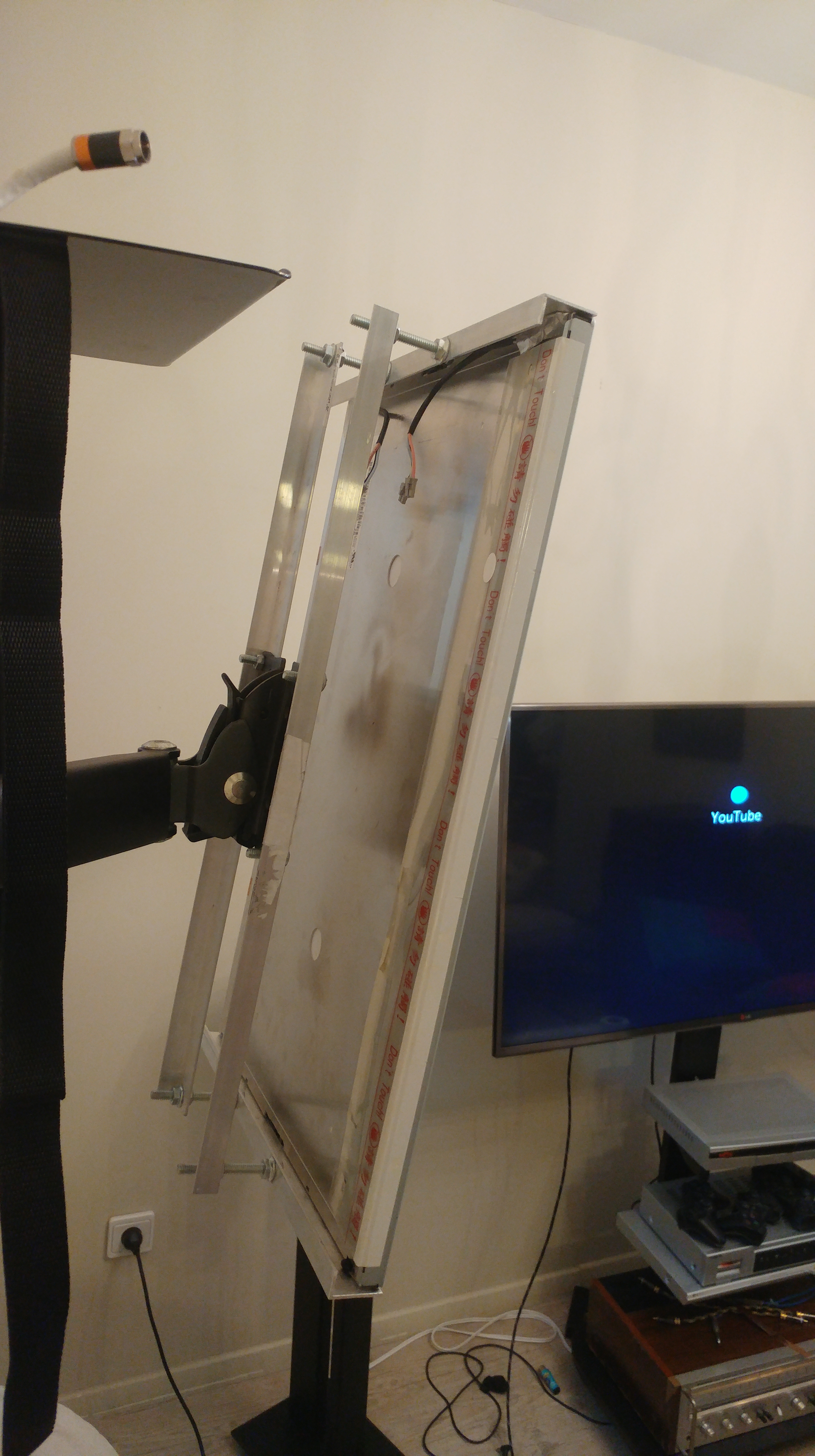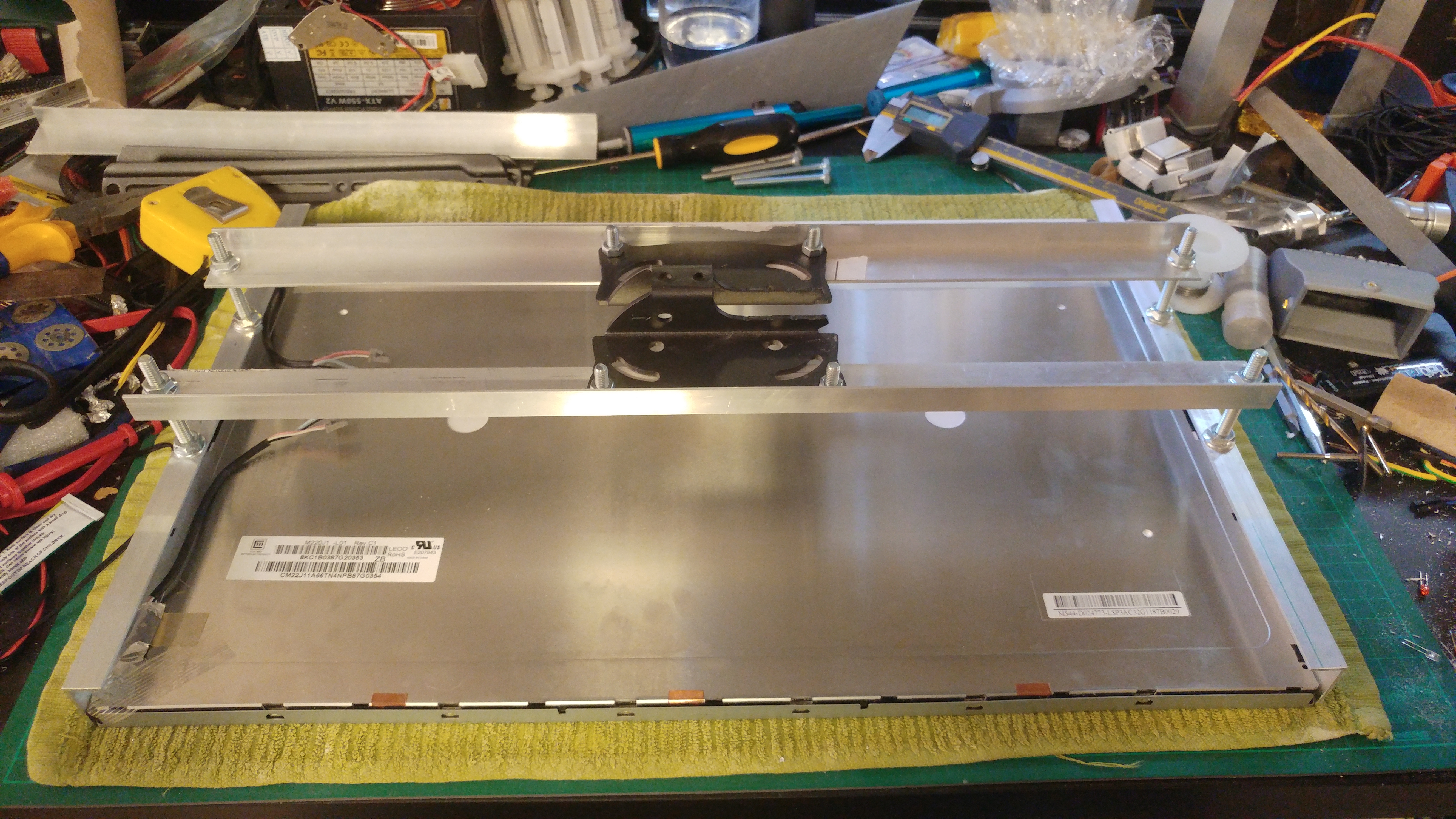 I cut angled aluminium to the length of all sides of the screen, two pieces fit the sides of the screen (to be the top and bottom ultimately) and two that connect them to the VESA mount and the cage.