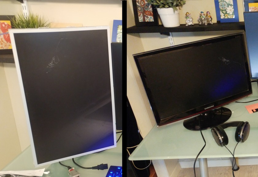 When I started to disassemble the screen’s case, I found that the actual screen is much smaller and that the huge bezel could be removed.