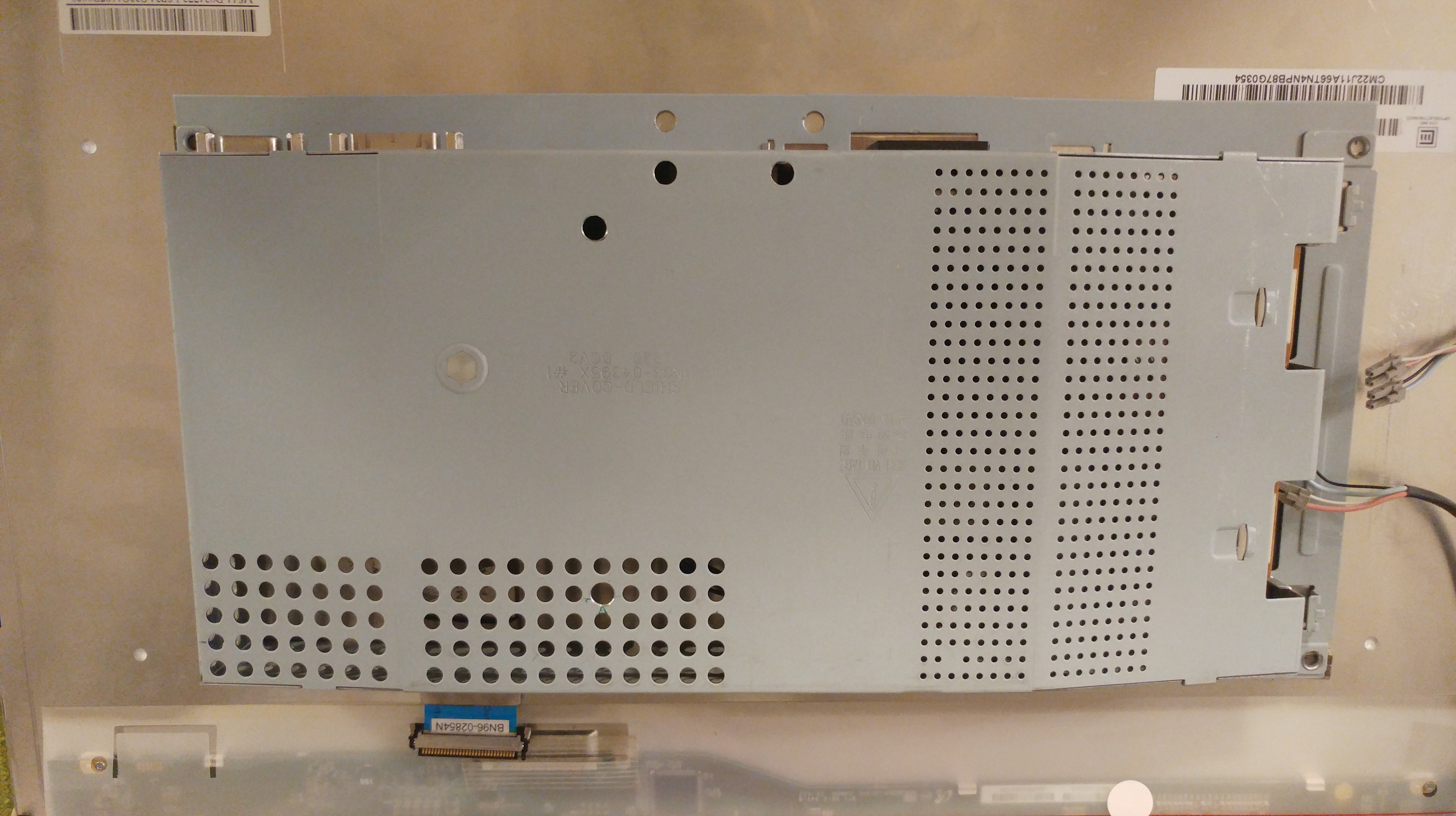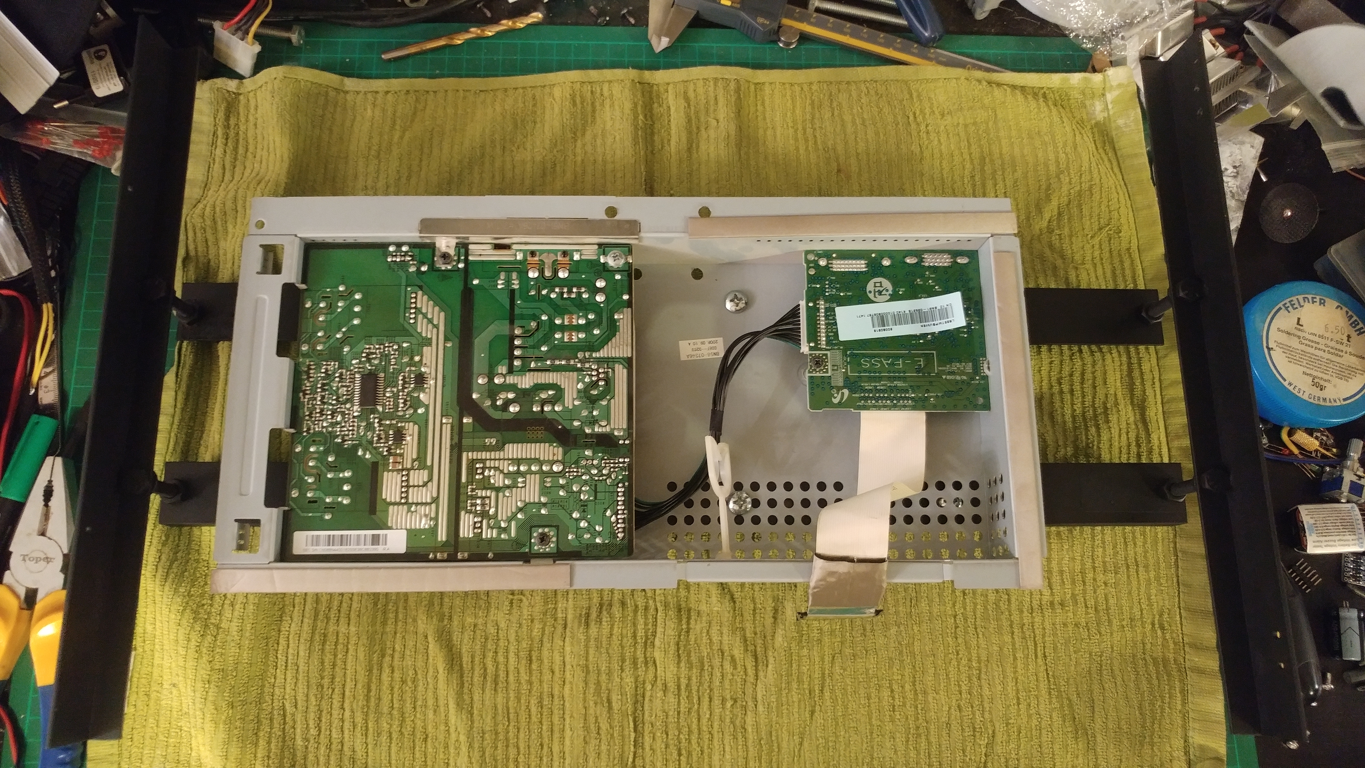 After discarding all the non-important parts I was left with the screen itself and its driver circuit with power supply in a metal cage.
