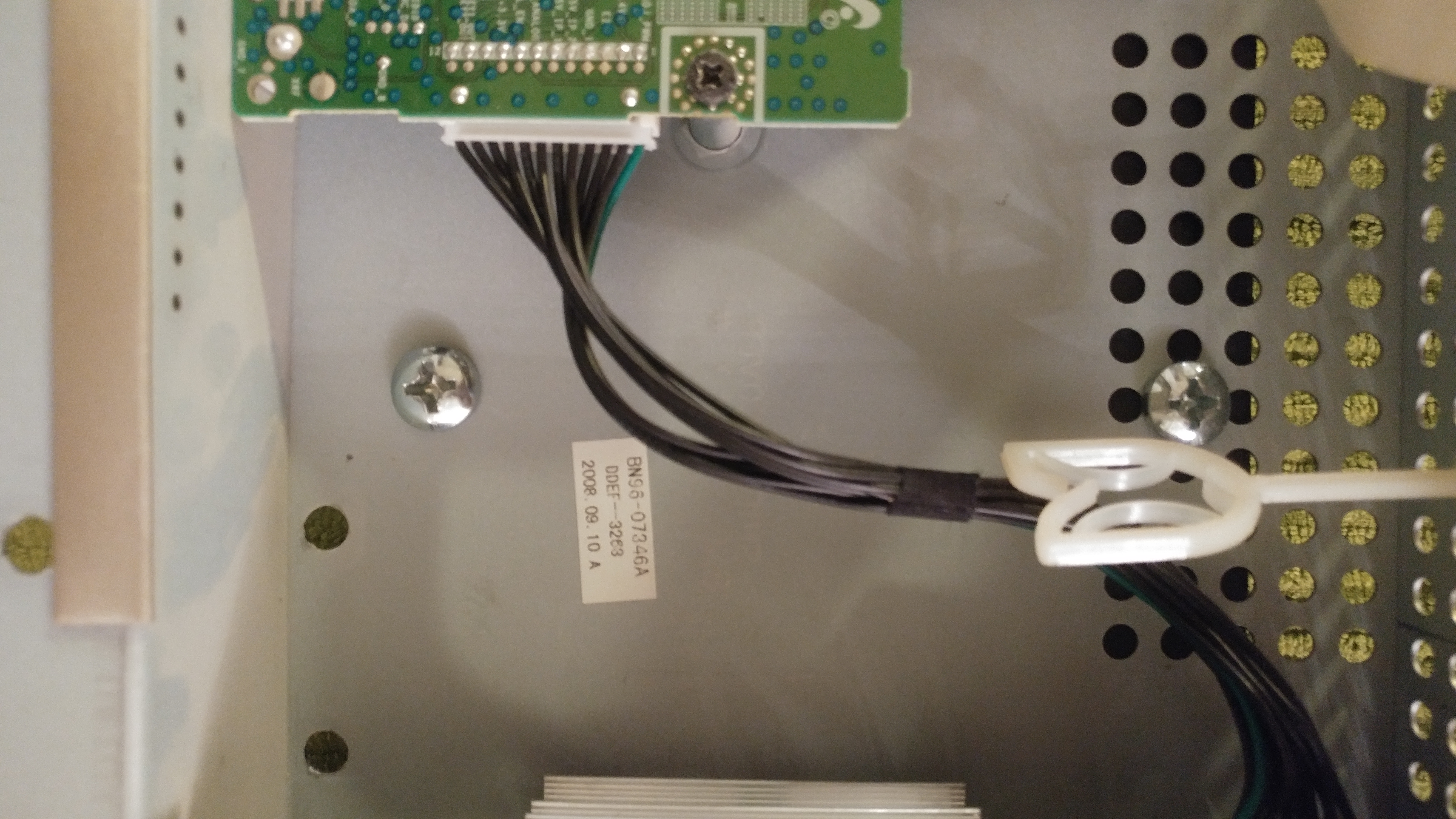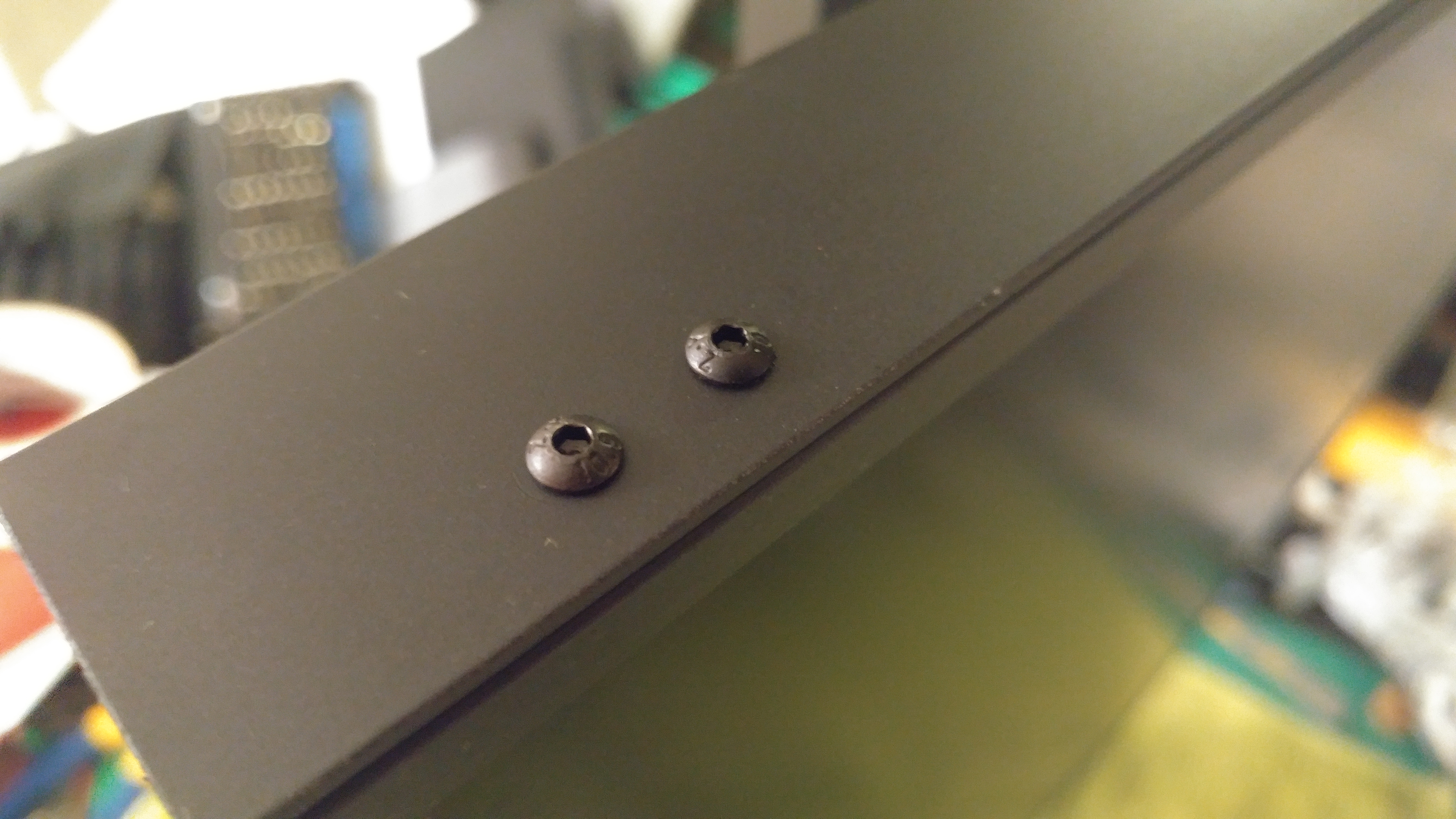 Conveniently, there are M3 threaded holes on the sides of the screen. These holes were not used in the old frame, but they seem to be in a pretty rigid piece of metal and nothing is behind the holes so a screw won’t damage anything on the inside.