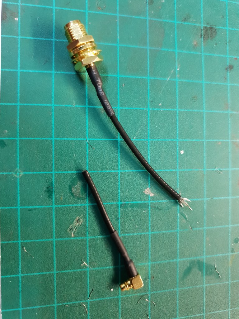 The connector itself was never found after the crash and I don’t have spares of this kind, so I decided to butcher a coax pigtail and solder it straight to the board.