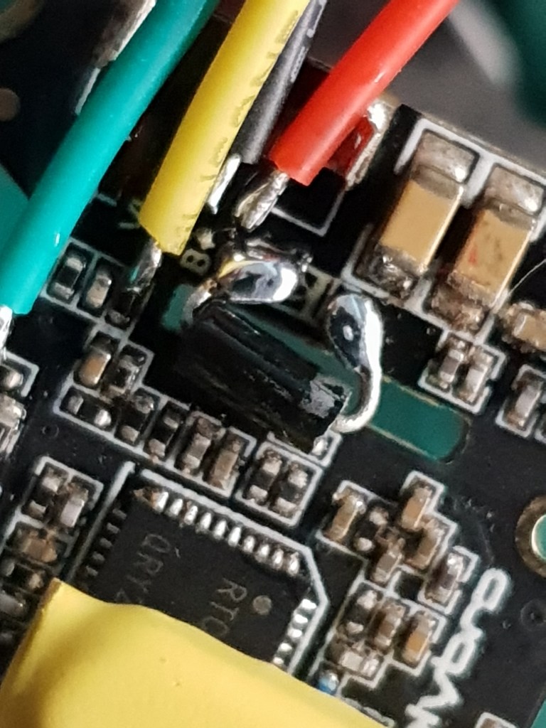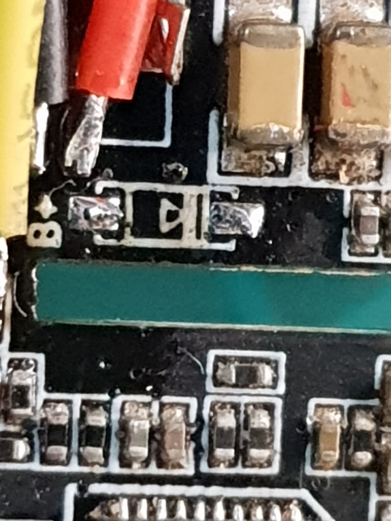 There’s also a diode near the power input pins that seems to have a cracked package.